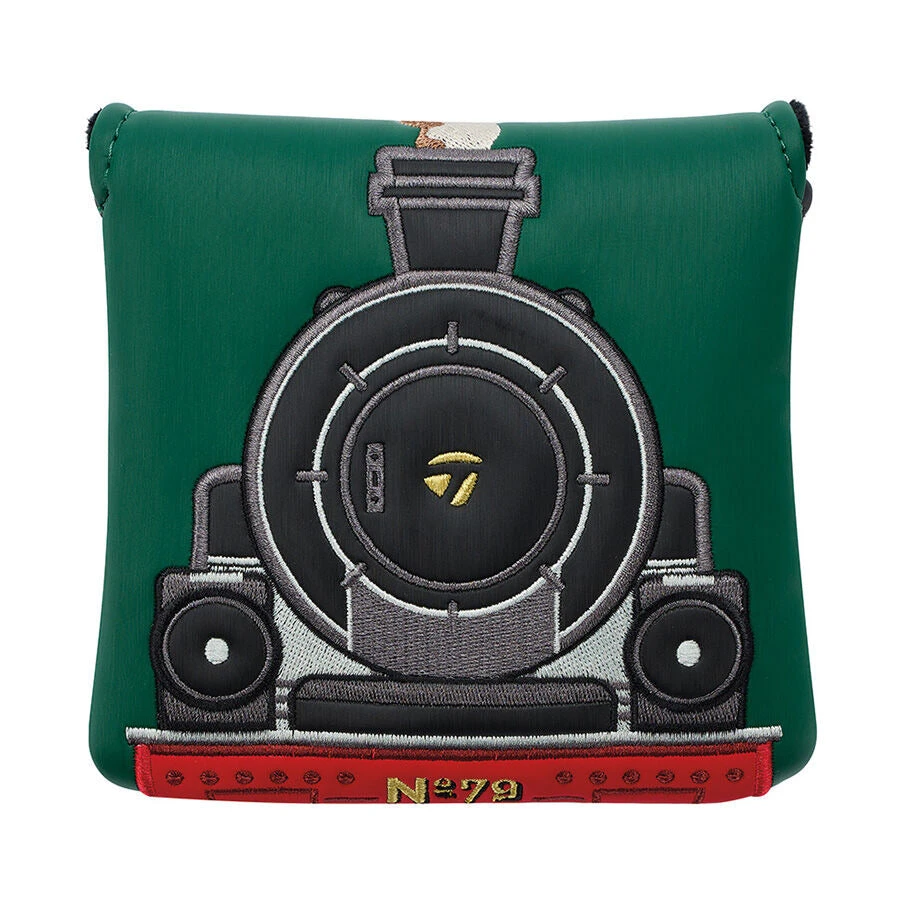The Steam Line headcovers carry on many of the same design themes found in the staff bag. Here again, black, red and green colorways with gold trim announce themselves, as do tributes to the iconic train.