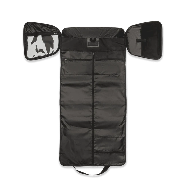 - Integrated garment bag